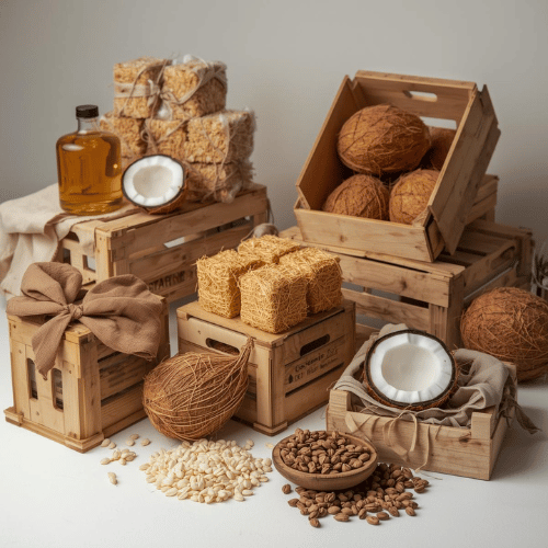 Coconuts, coir pith, and seeds are selected for premium quality and freshness.